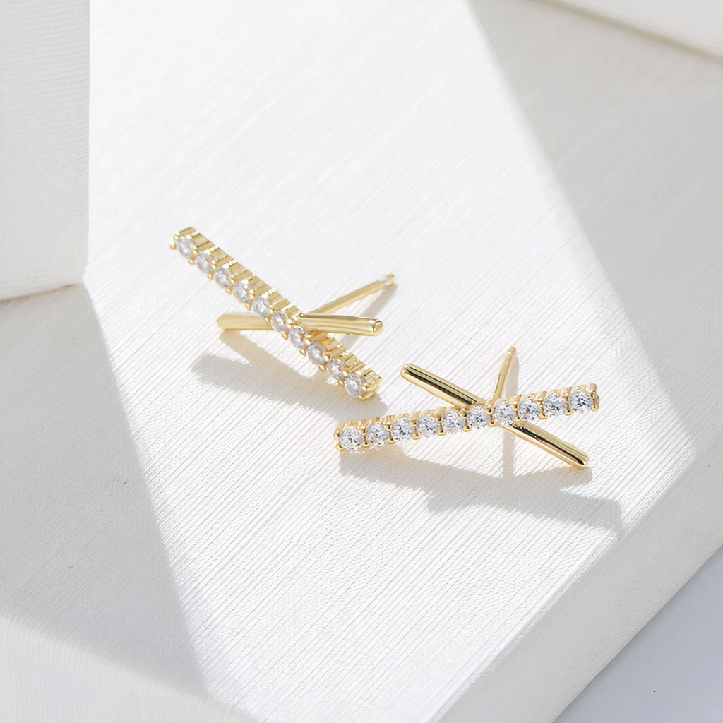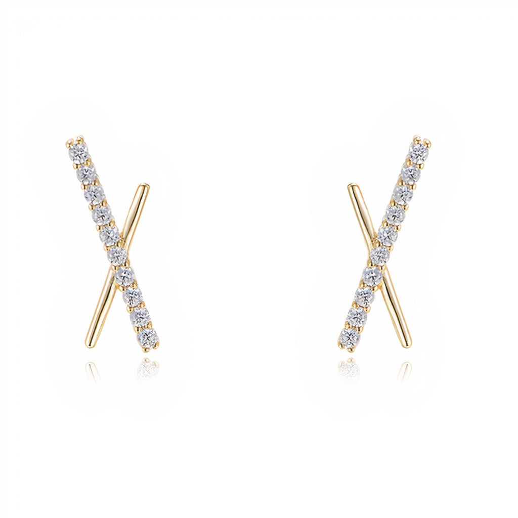 Our Kirby Earrings are a playful mix of intersecting straight lines and textures, featuring 18K gold and Cubic Zirconia with a stud closure. Pair with a few dainty studs if you have multiple piercings. Hand-crafted using 18K gold plated sterling silver.