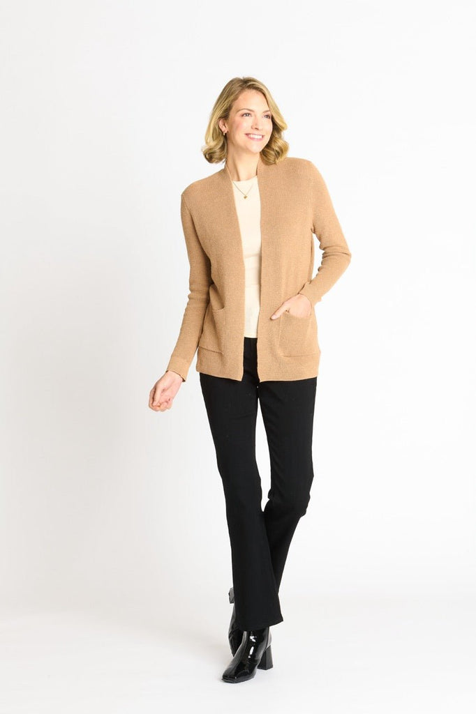 Waffle Stitch Cardigan Sweater with Pocket, Caramel Heather