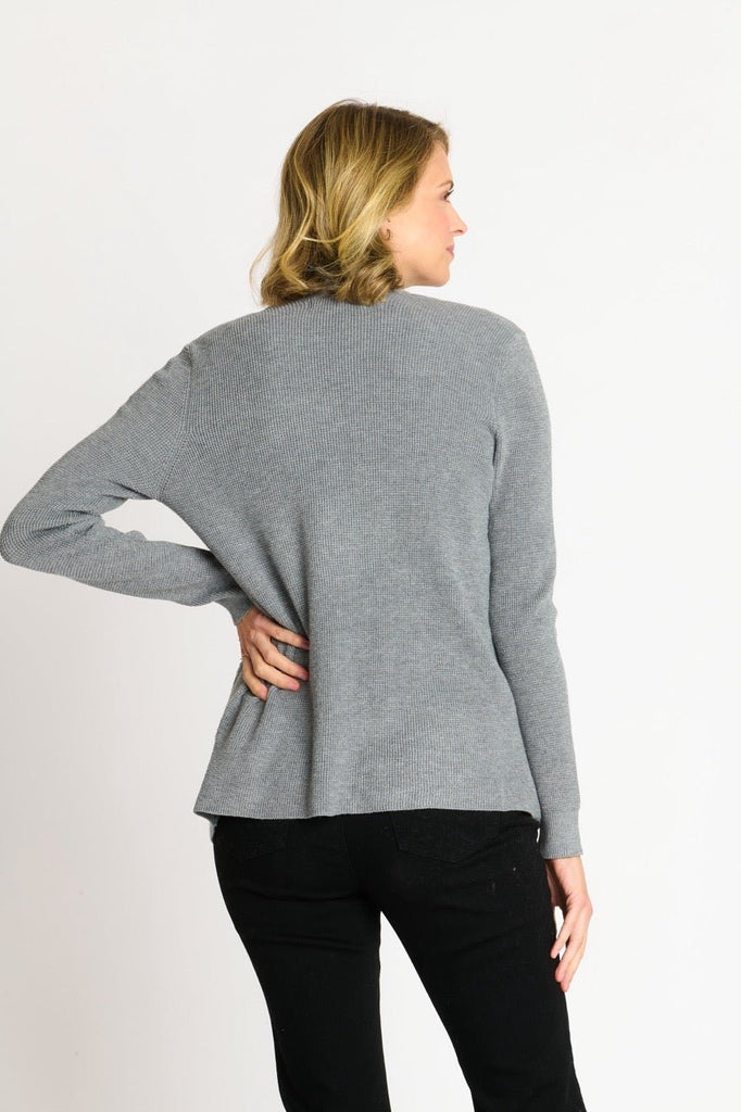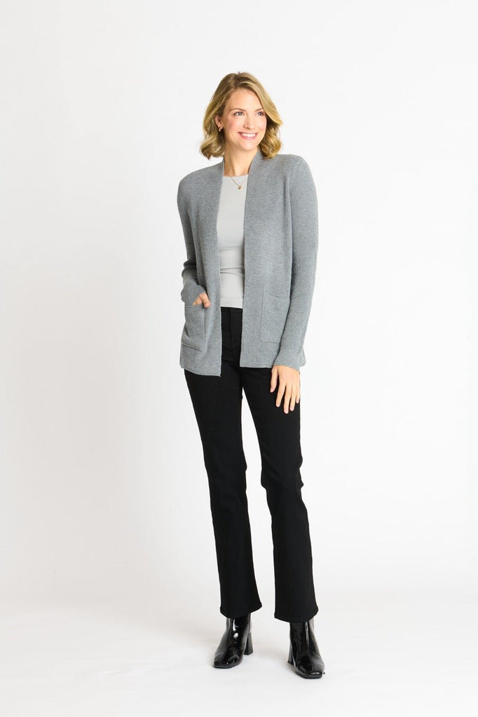 Our Waffle Stitch Cardigan in Medium Grey Heather is a lightweight, comfy layer with a textured look and handy pockets—perfect for easy, everyday style.